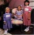 Anne Revised version-is a mid-calf length dress with a smocked or cross stitched inset. The smocked designs for the bows and red-birds, as well as the cross stitch alphabet are included. View A has a gathered shirt, puffed sleeves, Peter Pan collar with piping and gathered eyelet trim and barrel cuffs edged with piping and gathered trim. View B has softly pleated skirt, puffed sleeves, and piped Peter Pan collar and barrel cuffs. View C has a softly pleated shirt, 3/4 sleeves edged with piping and gathered eyelet trim, and gathered eyelet trim at the neckline finished with a self-bias band.